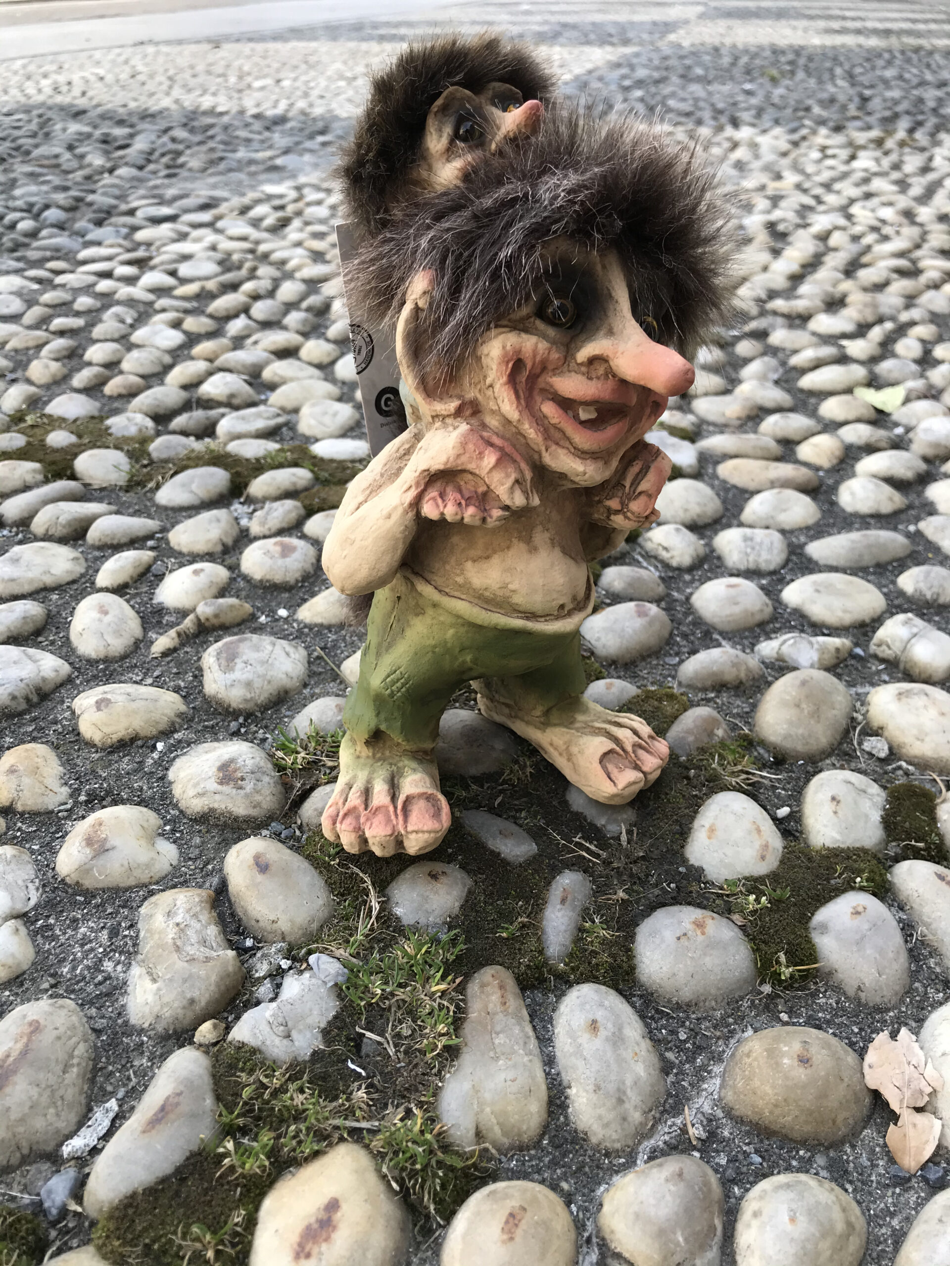 Troll medio, piccolo a cavalcioni, h. 20 cm